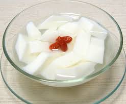 做法:先将白木耳放在水中泡发,蒟蒻切成口一样的大小,然后往锅中加入200cc水煮开,放入白木耳,煮软后放入代糖以及蒟蒻,接着根据个人口味加入枸杞、红枣,再煮30秒钟,熄火,放凉后冷藏即可食用。